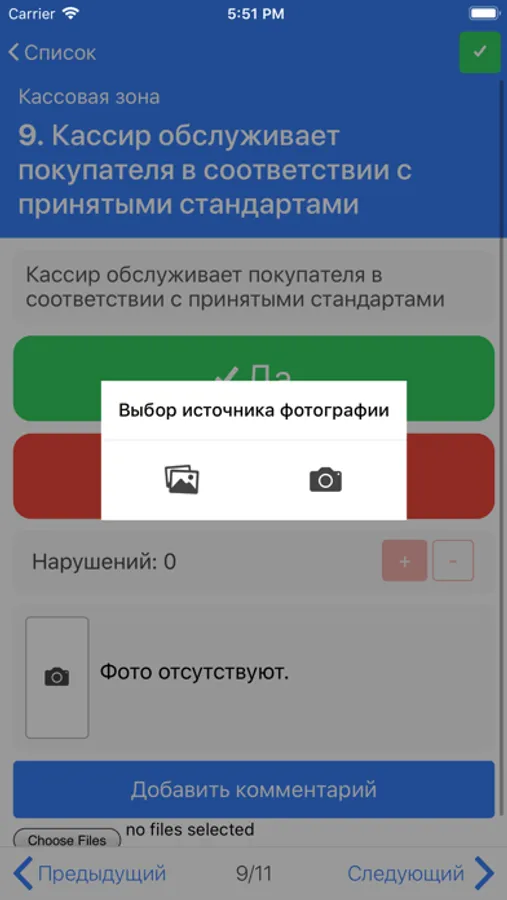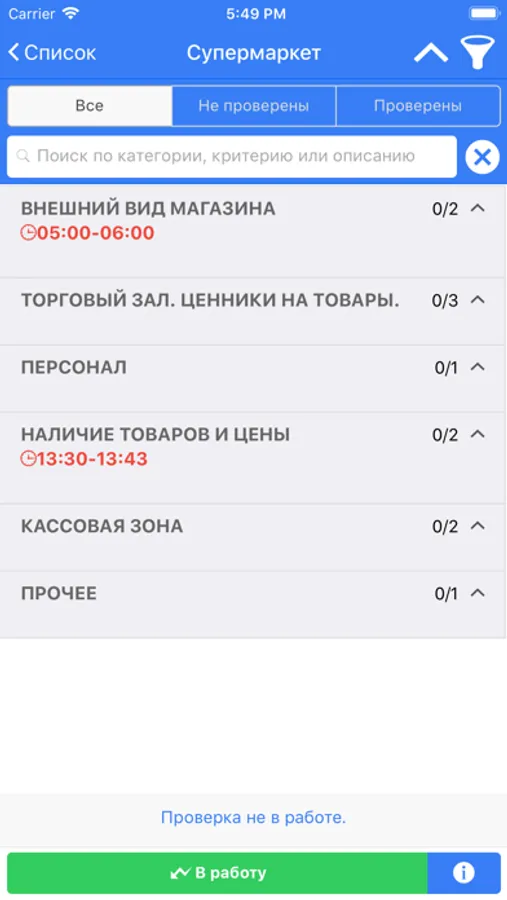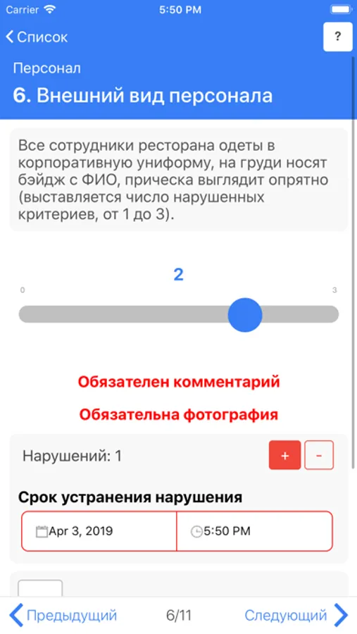 Мобильное приложение сервиса отлично подходит для использования в ходе выездных проверок, поддерживает работу в автономном режиме в условиях ограниченного доступа к Интернет. Используя приложение, вы сможете быстро и удобно заполнить чек-лист в требуемых категориях и областях проверки с указанием оценок, фиксацией нарушений и претензий, создать фотоотчеты и провести работу над ошибками с директором магазина или филиала для устранения нарушений.
