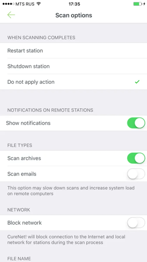 With Dr.Web CureNet, you can turn your iPhone into a remote control for the anti-virus protection of your home or corporate network. An easy way to scan and cure networks of Windows PCs and servers running other anti-viruses (not Dr.Web).