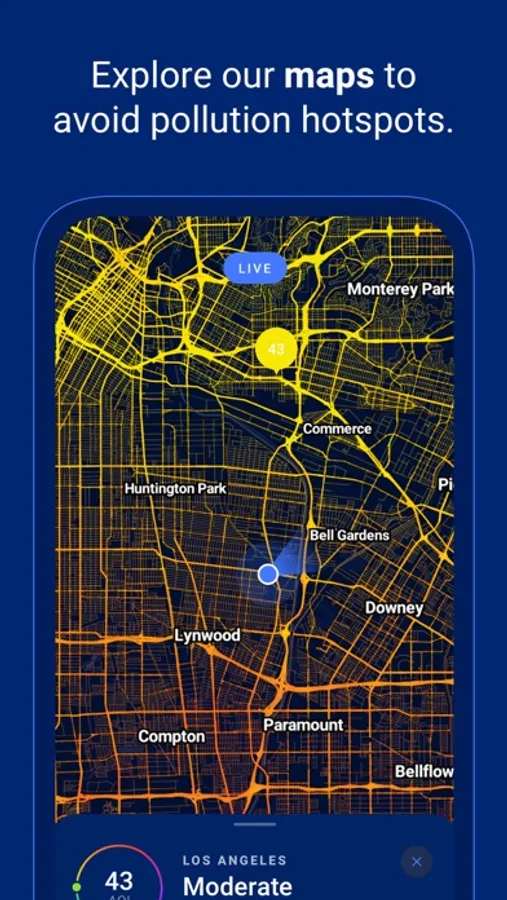 DETAILED MAPS: Live, street-by-street air quality maps give you detailed information about pollution levels on each street, in real time! Find the best route to work, pick the cleanest parks for a playdate—it’s all there in a stunning, easy-to-read map.