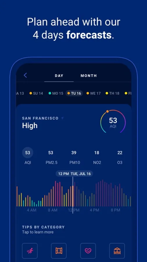HYPER-LOCAL INFO: Street-level pollution information is at your fingertips—pick your places, get the forecasts, drill into the maps! Studies have shown that access to this type of air pollution information can help you reduce your exposure by up to 50%.