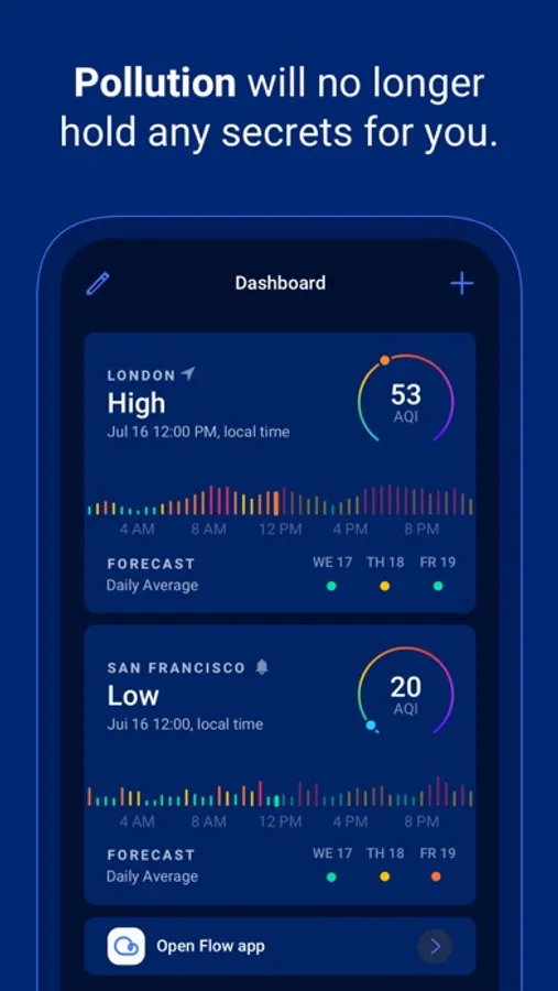 Smart Notifications: Intelligent alerts warn you of pollution peaks and tell you when the air is clean.