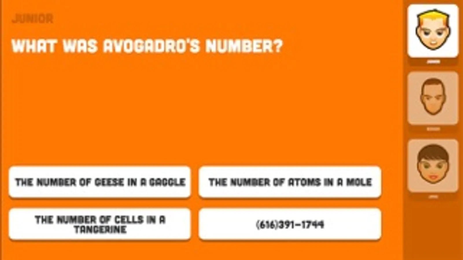 If the player fails to answer their question correctly they receive a new question. The game will continue like this until the player answers a question correctly at which point they can pass the game and the bomb to the next player, if they haven’t been blown up already!