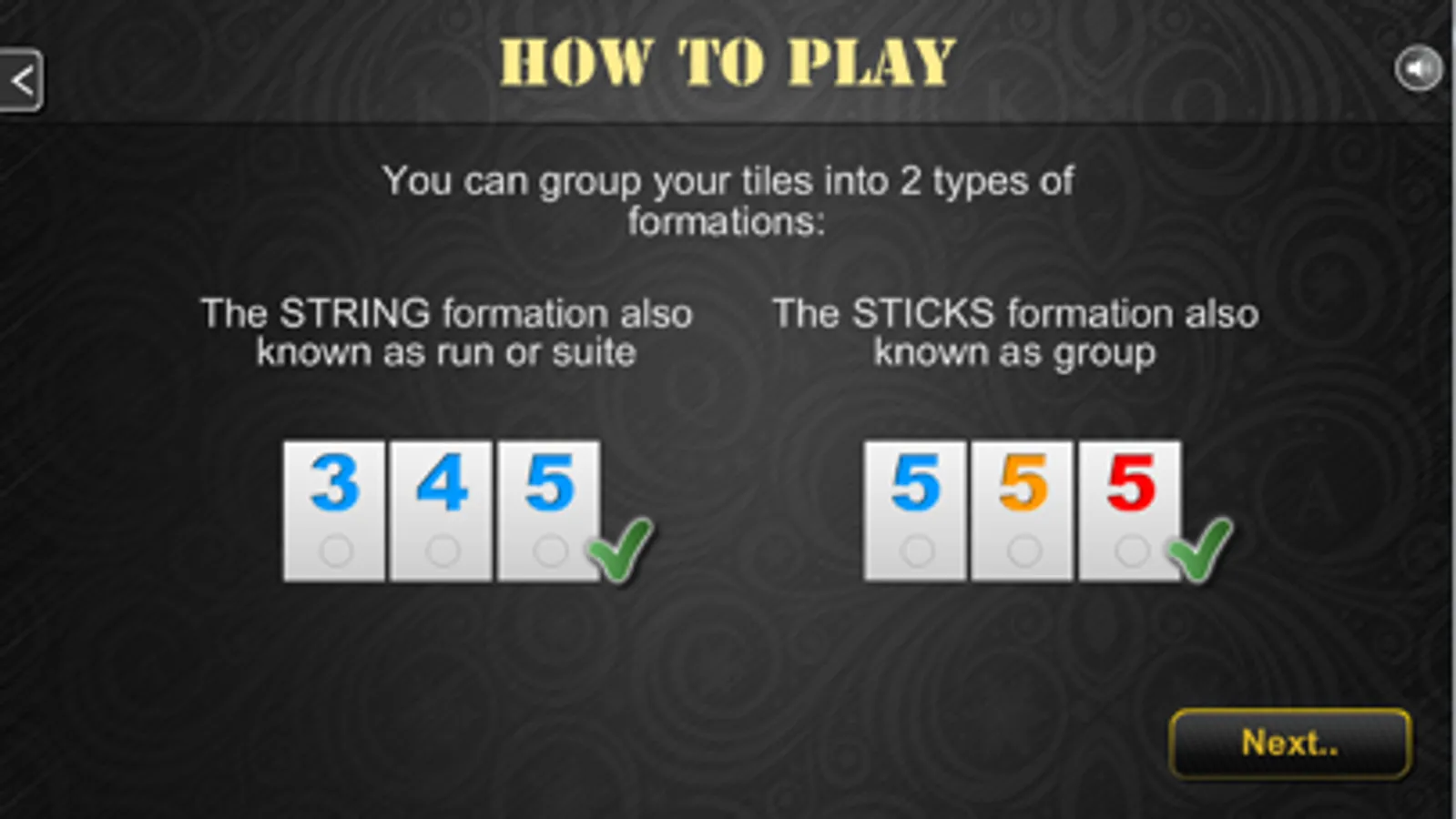 The game starts with 106 cards. Every player has to form valid card formations (ex: 12-12-12 or 3-4-5).