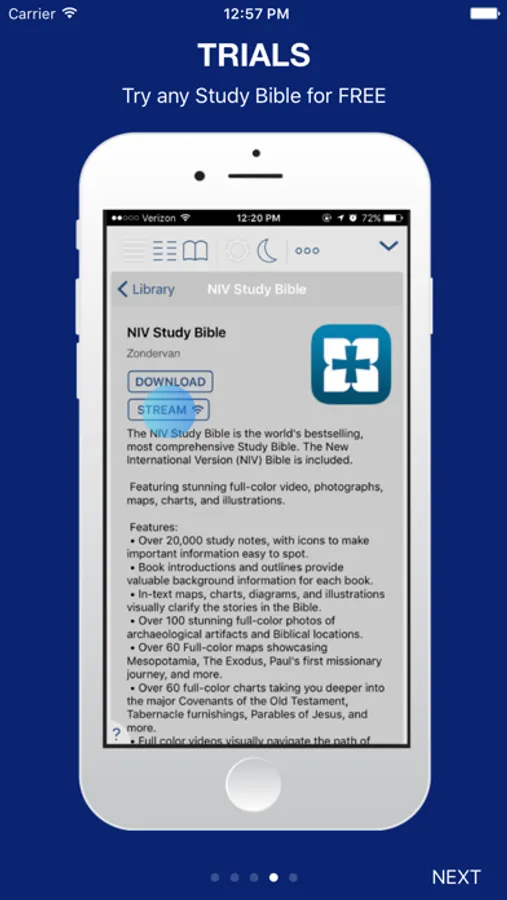 Want to read a featured Bible without an Internet connection? You can do that too by visiting the in-app library to download them for offline use!