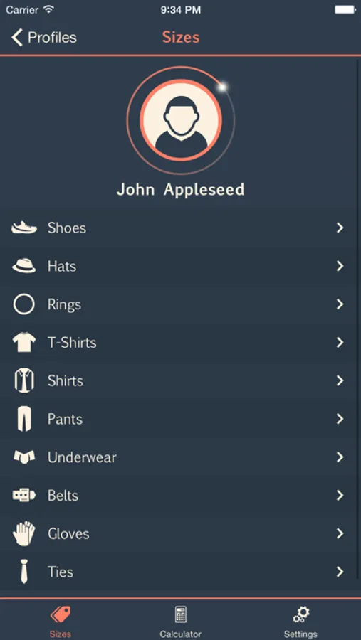With memoSize indeed, you can store the sizes of all your clothes and those of your loved ones, dividing them into categories and different brands.