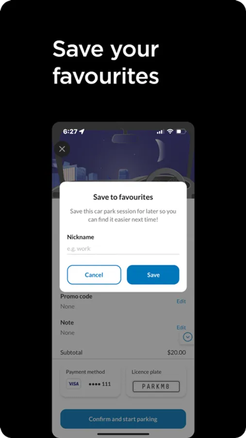 · Favourites – if you park in the same car park often, you can set up a specific car park or session as a favourite and start a parking session each day with only three touches.