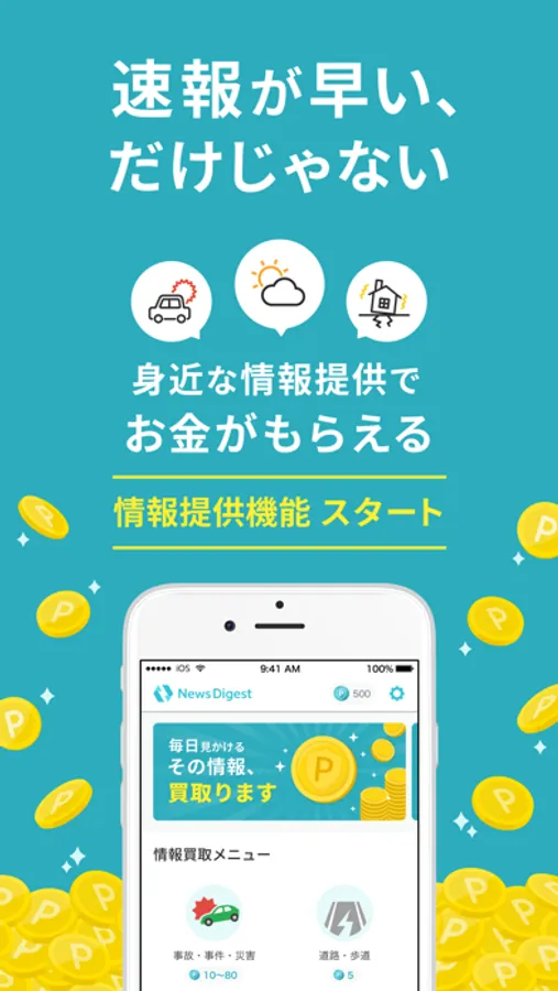 身近な情報提供で「お金がもらえる」ポイント機能を開始しました。