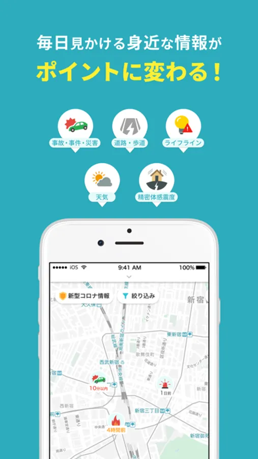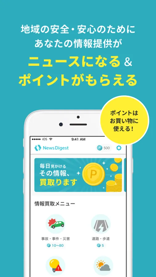 地域の安心安全につながる情報をご提供いただくことで、内容に応じたポイントが付与されます。