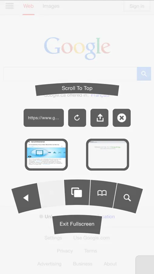 - Fullscreen: Drag the toolbar up or down to show your tabs or enter fullscreen mode.
