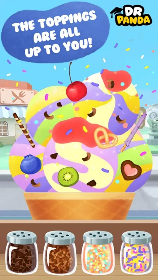 Chocolate? Vanilla? Strawberry? All three!? You decide! In Dr. Panda’s Ice Cream Truck all the flavors you can mix up all sorts of different flavors with cookies, chocolate, nuts and more to make the perfect ice cream—hundreds of combinations in all.