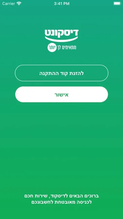 הפעלת האפליקציה בכל מכשיר נעשית עם הזנת קוד ההתקנה שנמסר לכם מהבנק בעת ההצטרפות לשירות.