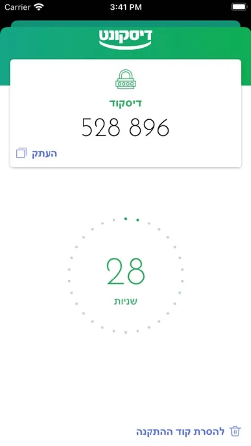 אפליקציית ״דיסקוד״ מאפשרת לך להזין את הקוד האישי המתחלף, המוצג על המסך, כאמצעי ״הזדהות חזקה״ באתר עסקים+ של בנק דיסקונט.