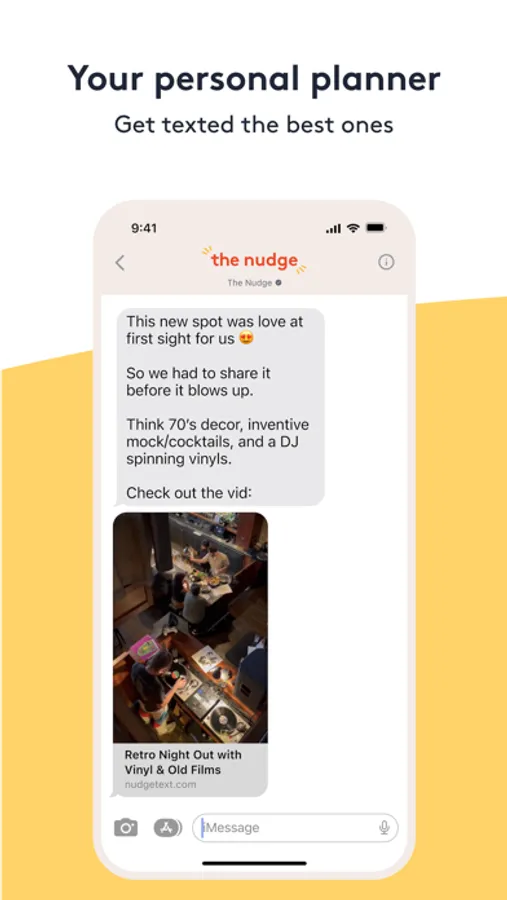 Every week, we craft and text you 3 lifestyle “Nudges,” from secret hike plans to life-changing date ideas. We design each Nudge to make it effortless to be your most adventurous, romantic and social self that week.