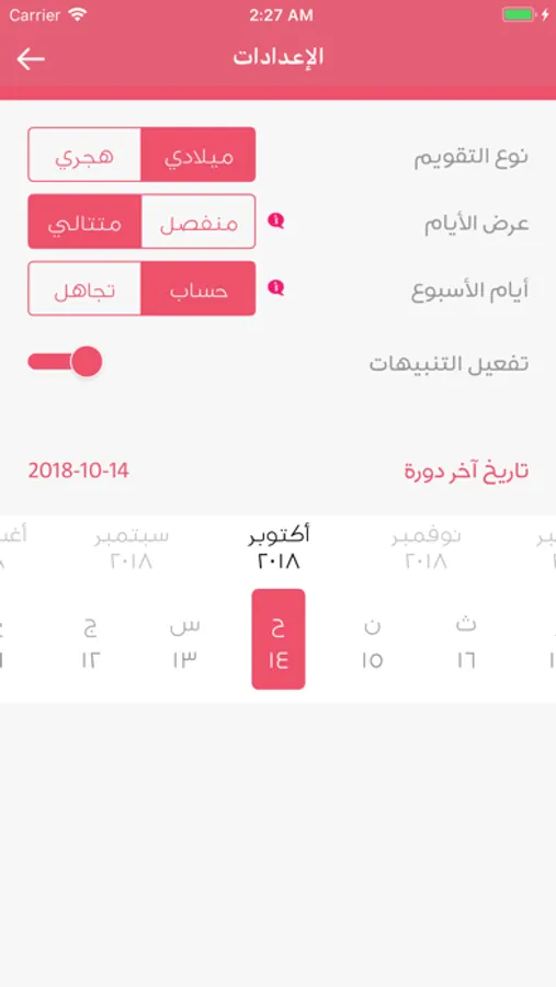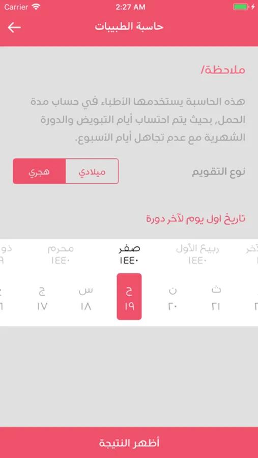 - تحديد بداية و نهاية الحمل مع اظهار الفترة الحالية بالايام و الاسابيع و الاشهر.