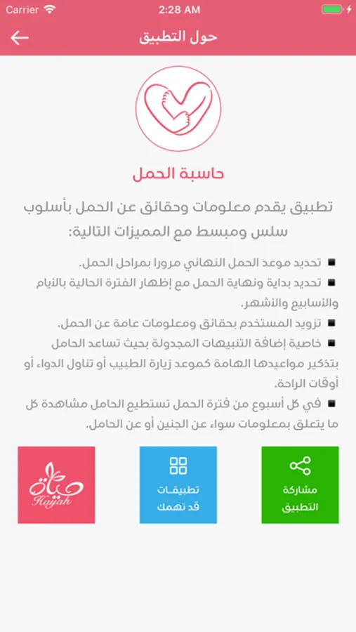 يقدم معلومات و حقائق عن الحمل بأسلوب سهل و مبسط مع الميزات التالية:
