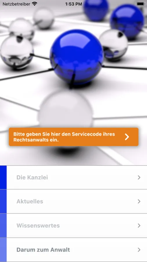 Bitte beachten Sie: Die vollumfängliche Nutzung der App setzt die Eingabe eines Servicecodes voraus, den Sie von Ihrem Rechtsanwalt erhalten.