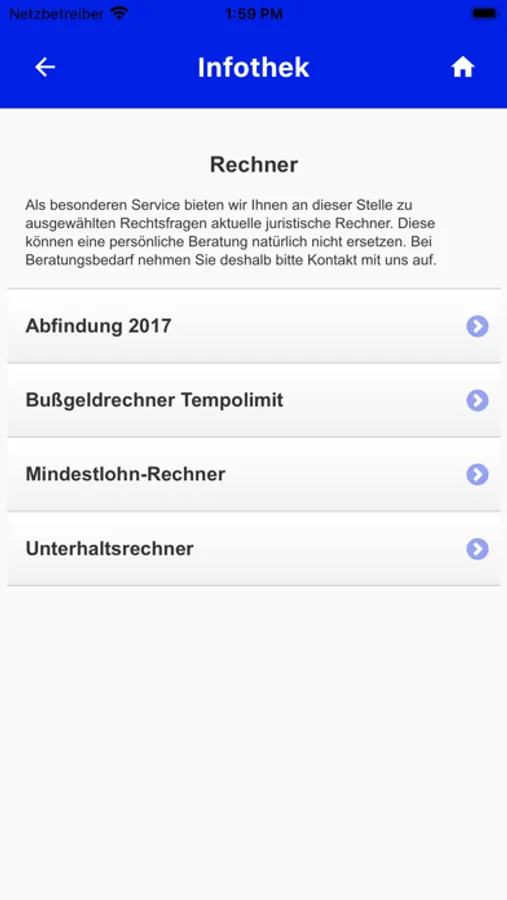 Diese kostenlose App als ein Service Ihres Rechtsanwalts liefert Ihnen monatlich rechtliche Neuigkeiten und Tipps für Ihren beruflichen oder privaten Alltag und bietet darüber hinaus hilfreiche Antworten zu ausgewählten rechtlichen Fragestellungen zum jederzeitigen Nachschlagen.