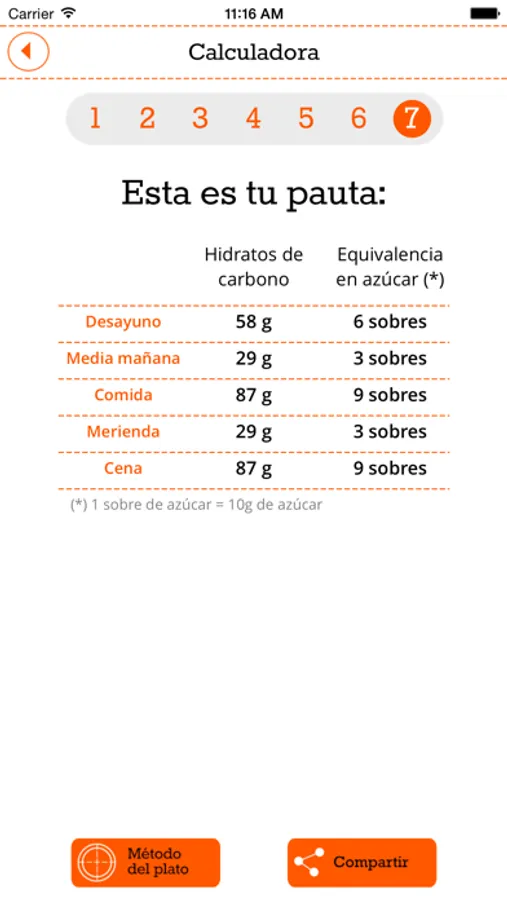 1. Calculadora de hidratos de carbono: Te permite calcular según las variables introducidas la cantidad de hidratos de carbono recomendada según las necesidades de cada persona.