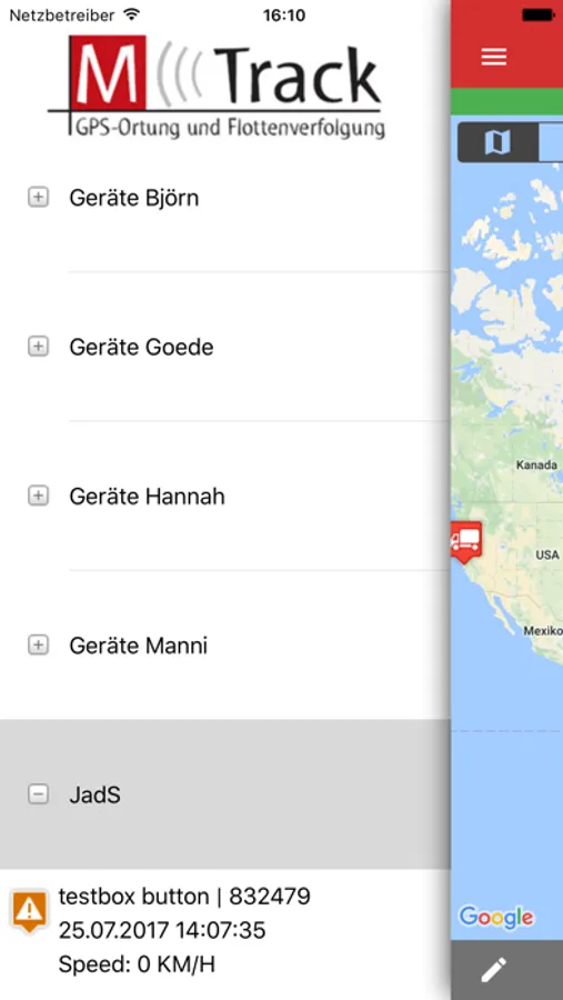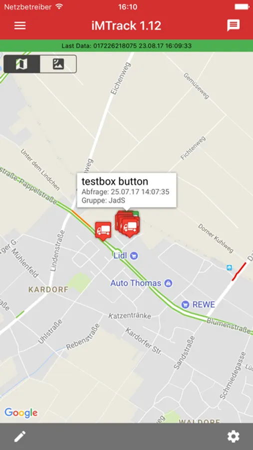 Die iMTrack App bietet die Möglichkeit, Fahrzeuge, die mit einer entsprechenden Hardware ausgestattet sind, auf einer geographischen Karte auf dem iOS Gerät zu verfolgen und mit ihm zu kommunizieren.