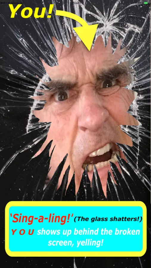 - If someone touches/moves the iPhone/iPad: The screen ´shatters´ with a 'sing-a-ling' and you shows up with a scary voice!