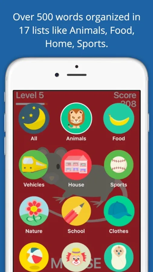If you like PopSpell Lite, try PopSpell that has over 520 words organized in 14 categories: food, home, school, vacation, vehicles, sports, nature, games, technology, numbers, space, etc.