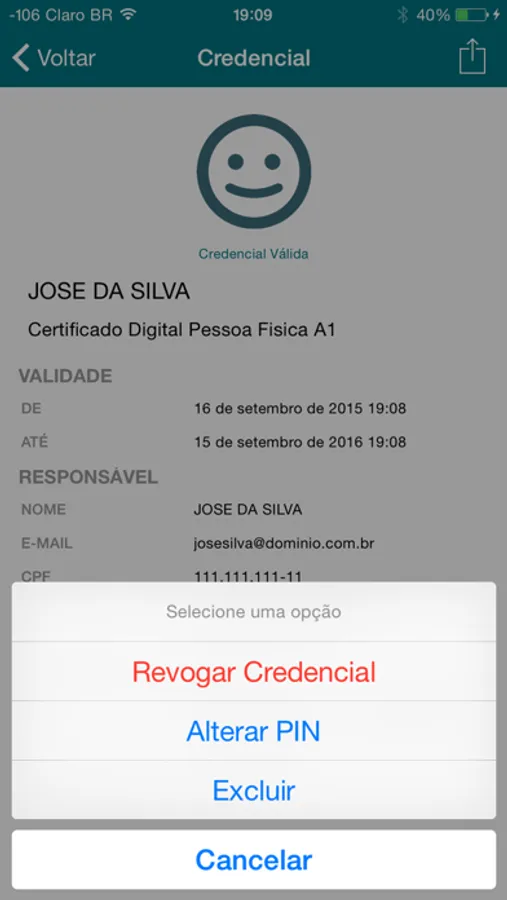 · Revogar a credencial diretamente no dispositivo móvel.