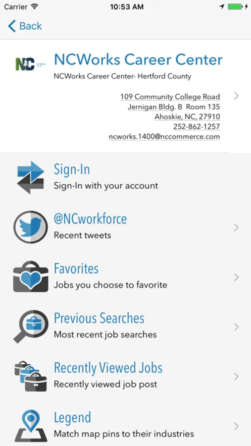 NCWorks Mobile lets you instantly return to previous searches, recently viewed jobs and your favorite jobs.