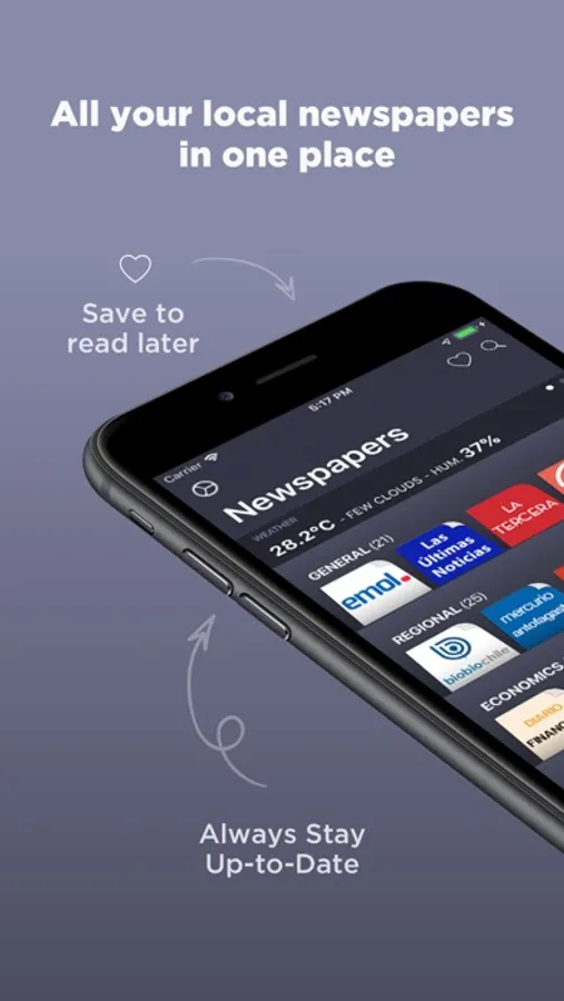 The logos of each newspapers and magazines are their exclusive property. Chilean Newspapers only uses them to acknowledge each publication while using the application. The logo of Chilean Newspapers is property of the developers.