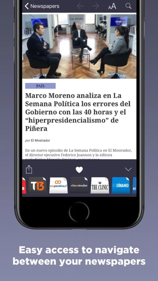 Chilean Newspapers is an application where you can find the most important and popular newspapers and magazines read in Chile. Using this application you can meet all the information in one place without searching the sites of each newspaper or magazine.