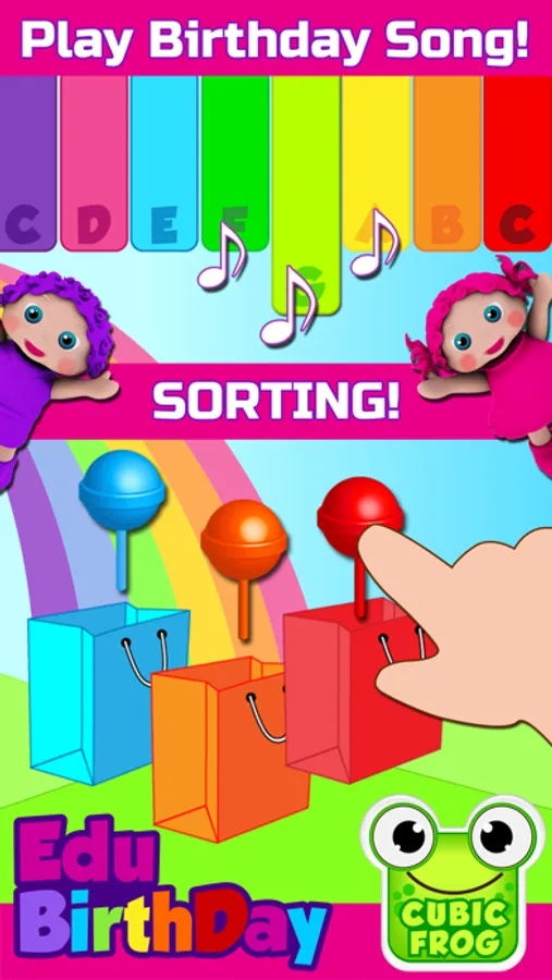 The toddler-friendly interface helps children in their learning process. All Cubic Frog® toddler apps have voice commands which help little learners listen and follow instructions. There are 18 mini-games in this children's app, each of them focusing on one early learning concept in toddler education such as color learning, spelling, sorting, memory games for kids, and much more. EduBirthday is inspired by the Montessori educational curriculum which is highly recommended for kids with autism and is a good option for speech therapy. Let’s celebrate together!