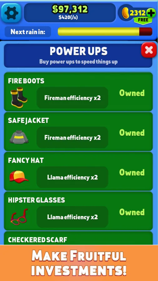 BUY new equipment, fertilizers and power-ups to give nature an expensive hand and make your money maker grow faster in a truly rich game. Hoses, sprinklers, lucky charms, alien generators: if they take cash, it’s yours! All this in a clicker game interface that is easy to learn. See how casual games are fun?!