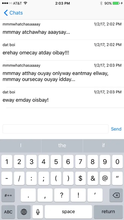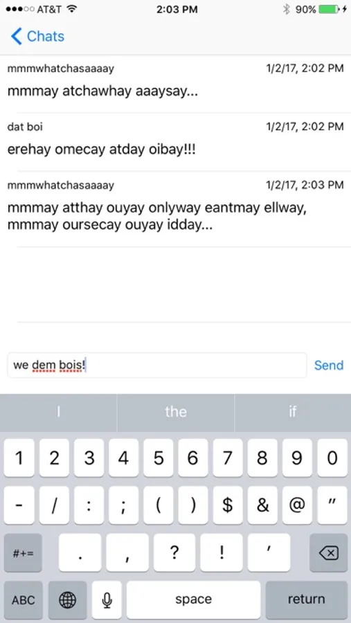 Chat with your friends in pig latin! (Hatcay ithway ourway riendsfay inway igpay atinlay!)