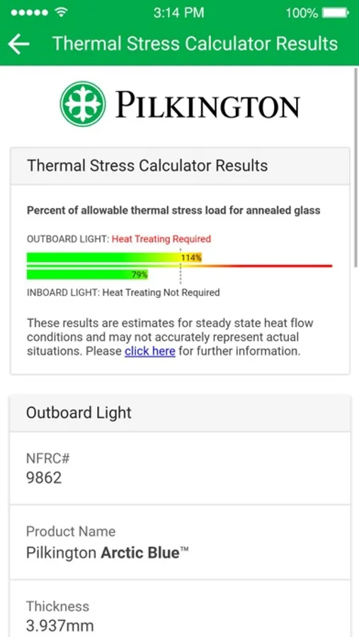 The Pilkington Thermal Stress Calculator is designed to help you determine whether you need to heat treat or temper a wide variety of glazing combinations. It even accounts for the building’s location and shadows from overhangs, and allows combinations including other manufacturer's glass. Values are drawn for the performance data for each glass type as submitted by the manufacturer to the National Fenestration Ratings Council (NFRC).