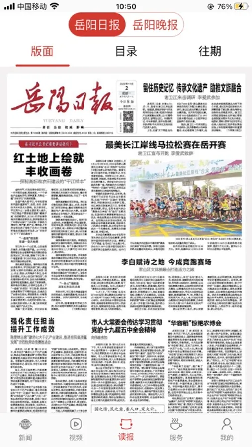 “岳阳日报”平台的内容定位是以岳阳日报全媒体采编中心即时新闻发布为特色,以市委机关报“岳阳日报”时政为核心,以长江信息报、洞庭之声报的社会、民生新闻为佐餐,以“岳阳”为地域关键词的数字化阅读平台。