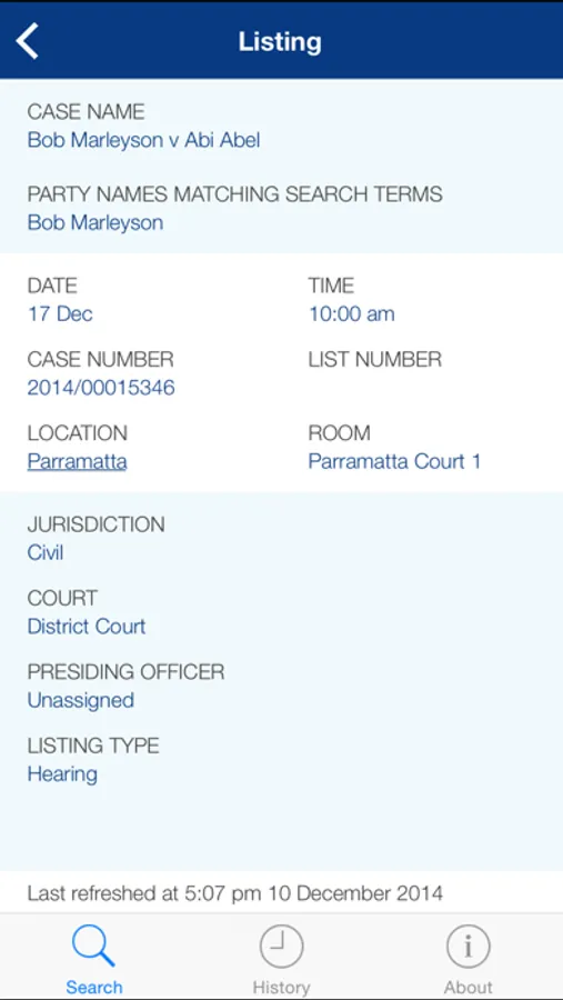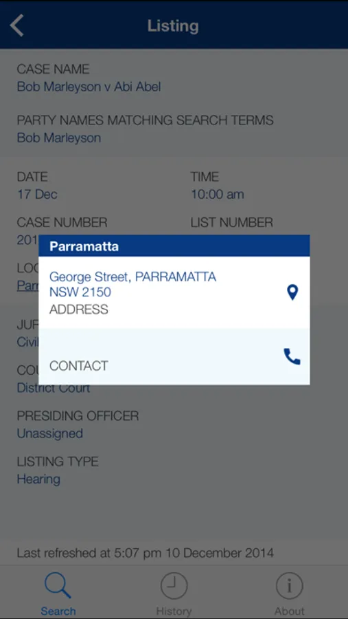 Search courts lists for the NSW Supreme, District, Local and Coroner’s Courts, up to three weeks in advance and one week in the past. With this free official app from NSW Courts, you can quickly find individual court listings by searching by case number or party name.