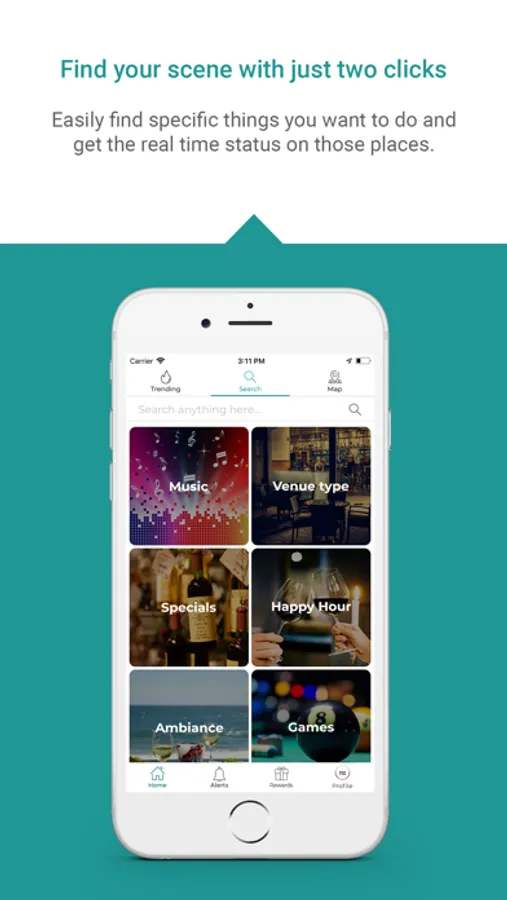 SceneKey is a community that helps you discover things you want to do in real time. With just two clicks, you can do very specific searches for things happening around you today, and even get the up-to-the-minute status on those places. No more old, stale, and incomplete information. Want to know who is playing hip hop music tonight? No problem. Want to know who has a martini special today? We got you. Join our community today and help us bring searching to real time!