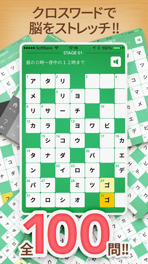 9x9のクロスワードパズルを100問収録。