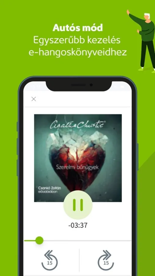 Egyszerűsített kezelés, hogy e-hangoskönyveidet biztonságos körülmények között tudd hallgatni olyankor is, amikor épp másra kell figyelned.