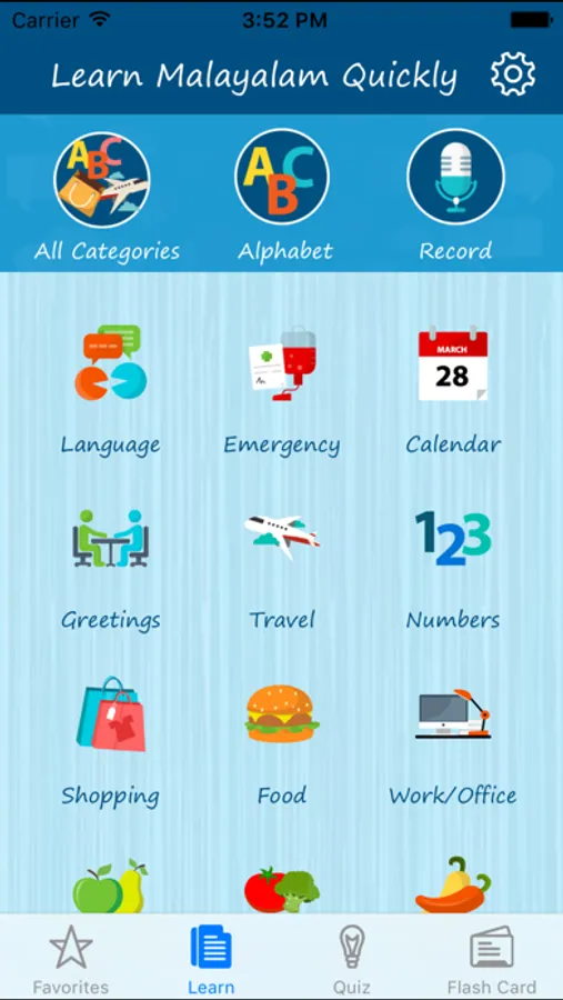 If you are determined to learn a specific category of words, Learn Malayalam Quickly will enable you that. It provides Malayalam translation for most frequently used words and phrases across 33 categories. You can use it like an English to Malayalam dictionary for 1100+ Malayalam words and Malayalam phrases. It’s indeed a great handy tool that will get you talking conversational language fast.