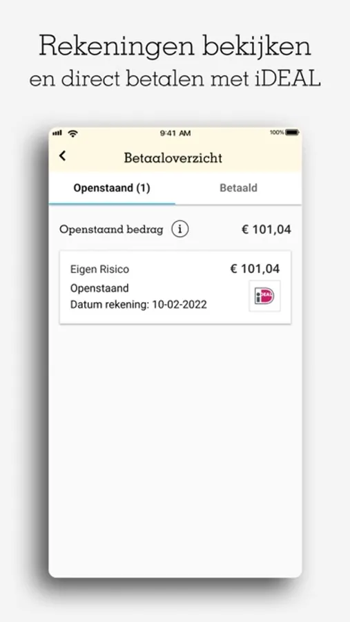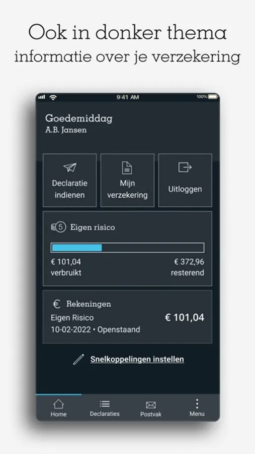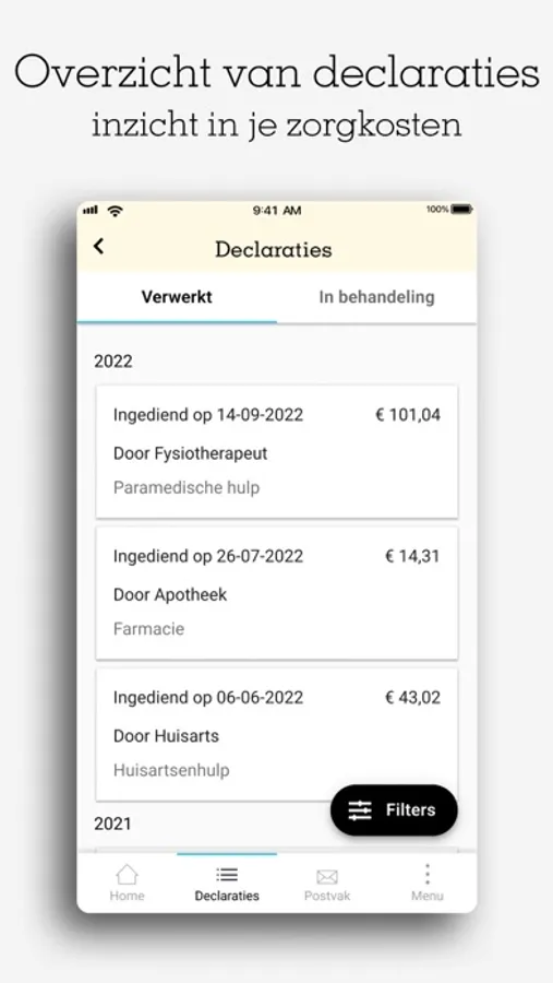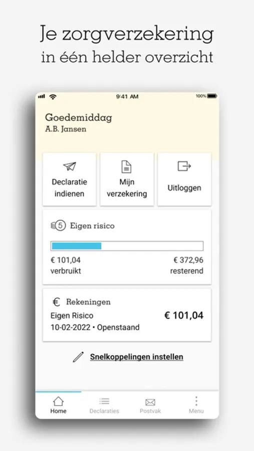 • zorgkosten declareren door in de app een foto van de rekening te maken of de digitale rekening te uploaden