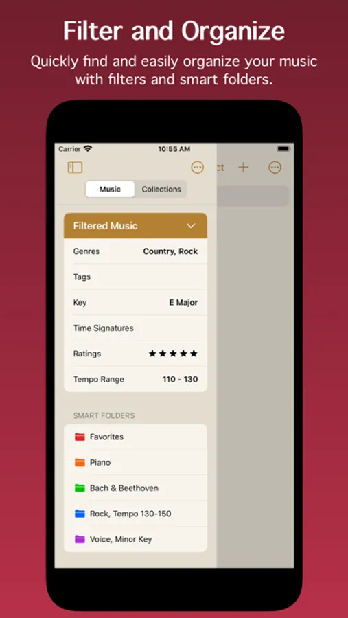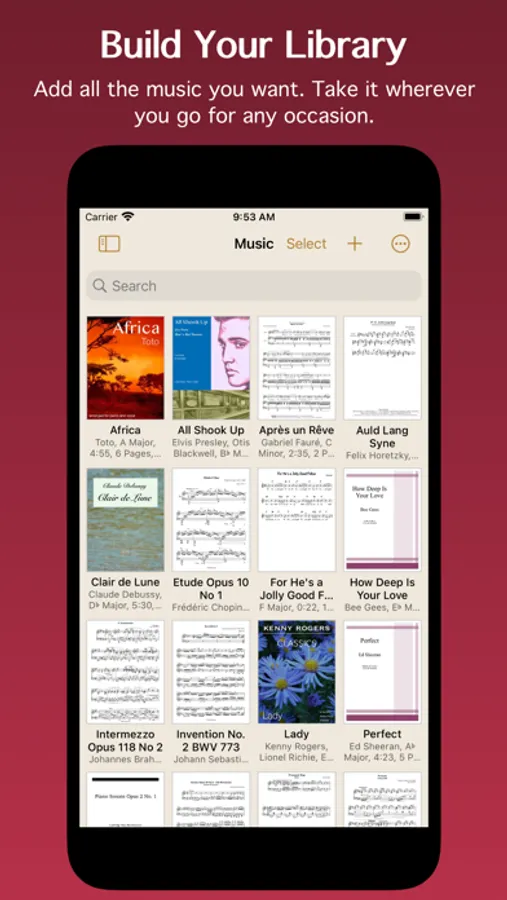 • Add scores with multiple movements or books with multiple songs, then organize them into sections.