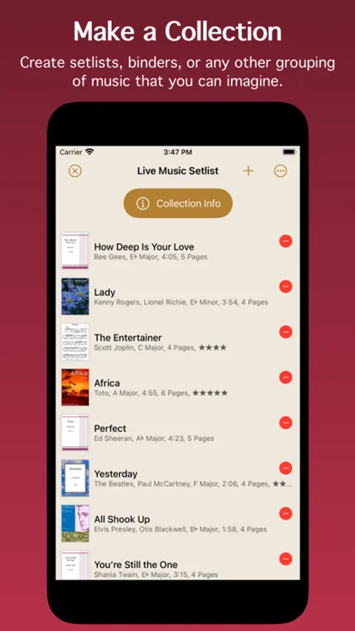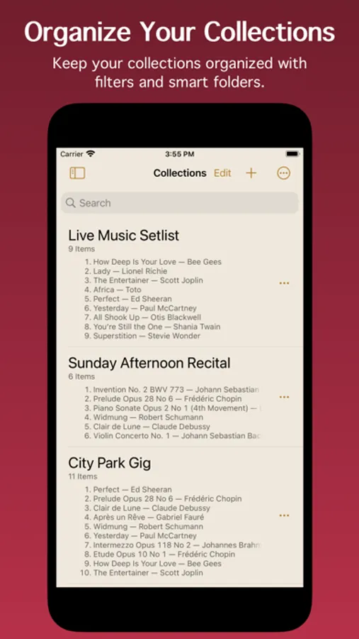 • Collections can be used for just about anything, like making a setlist for a performance, or creating a virtual binder or book.