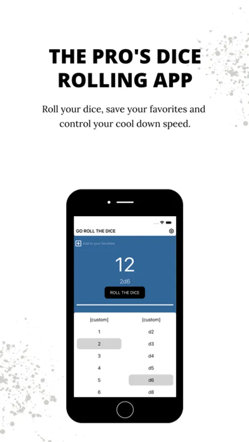 The dice rolling app for pro's who want the be able to save their favorite combos and control the cool down roll speed.