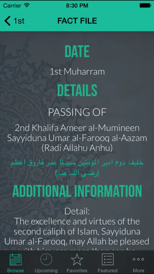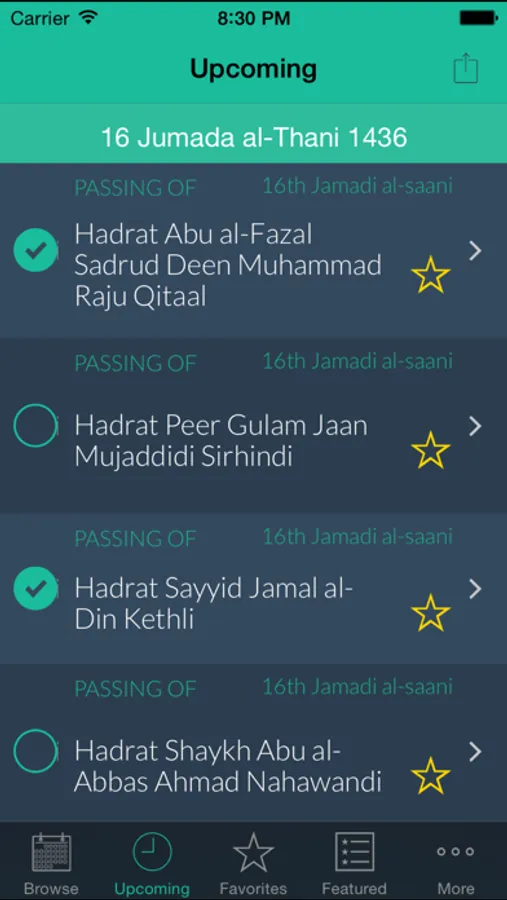 TheSunniWay presents the "Blessed Days" iOS Application. This app allows you to see current/upcoming important events in Islam, such as important days, nights and Urs/Birth dates of the Awliya. The aim of this app is to increase our spiritual connection to our pious predecessors by making Fatiha and learning about them through this app, which in sha Allah will be a means towards them interceeding for us in the hereafter!