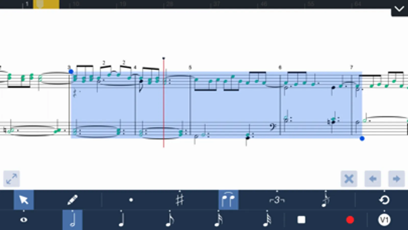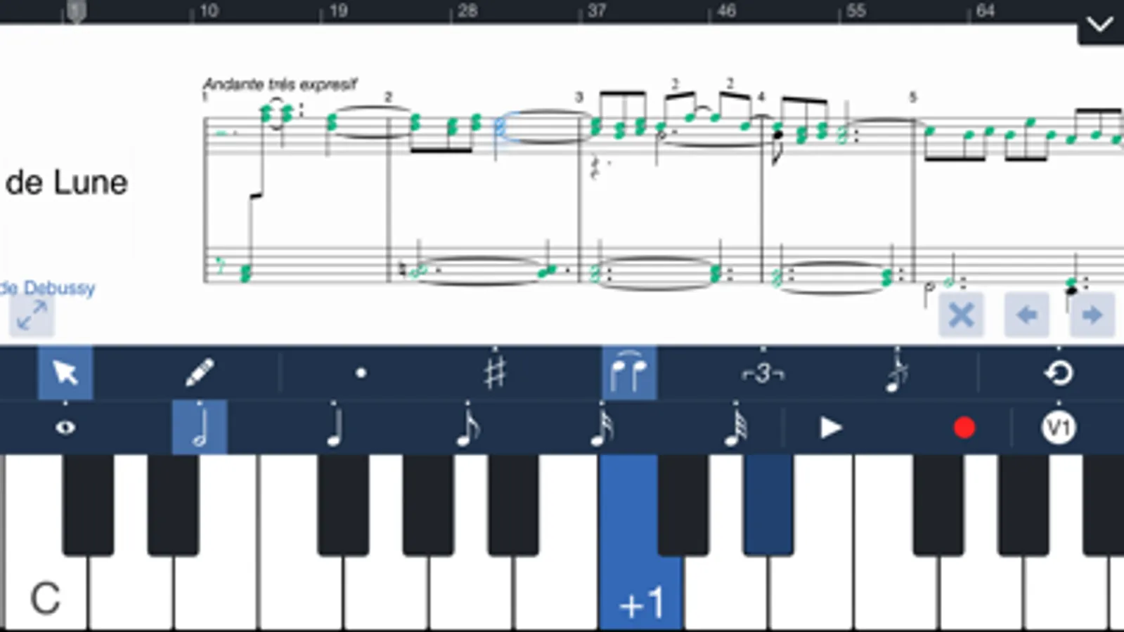 The Pencil tool allows you to tap anywhere on the canvas to quickly add notes and chords with the multi-staff & multi-voice editor. Powerful editing features like vertical drag to transpose and On-Screen piano lets you compose even more quickly.