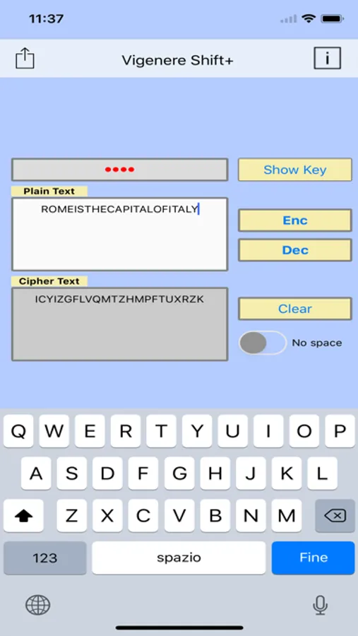 With this simple App you can encrypt or decrypt messages with the Vigenère Cipher.