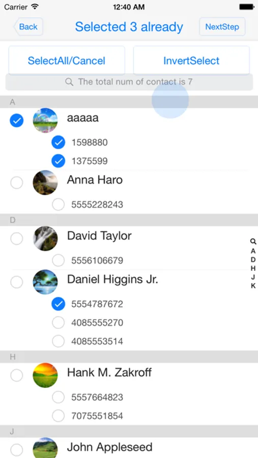 *Using SMS , Bluetooth, two-dimensional code to share contact of individuals 、groups、 any more than ,I believe you will love to share contacts .
