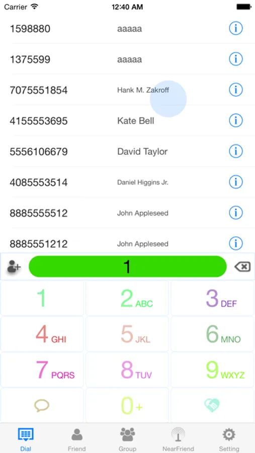 *Using numbers 、name to search , in dial-up interface ,you can click to dial and long press to send message from the search results. it's quickly and easily .