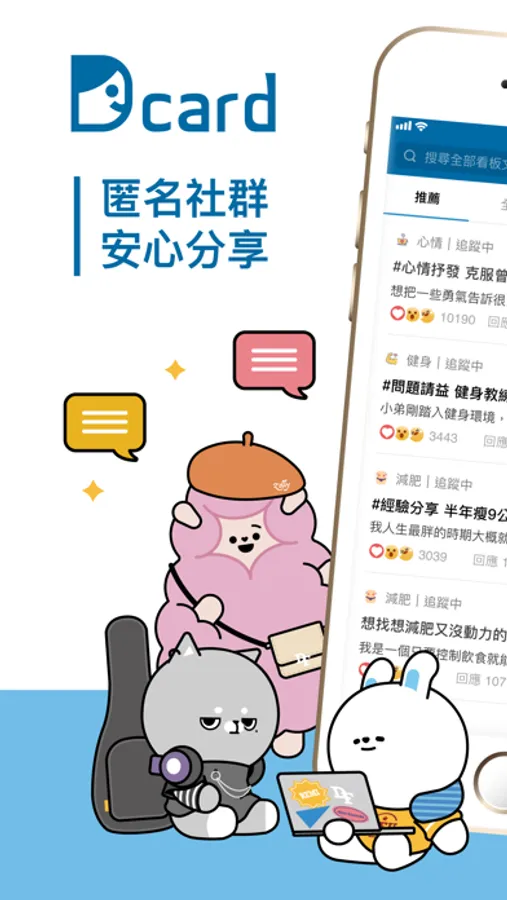 Dcard 是年輕人最愛的匿名社群,因為匿名,你可以無拘束地在這裡討論不敢和朋友說的心情與秘密,可以討論生活中發生的大小事,像是情感話題、美妝穿搭或是分享美食等各種熱門話題。