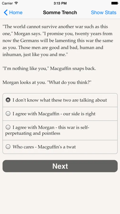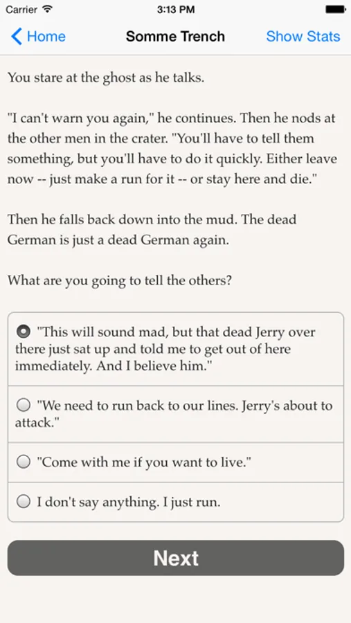 Your best bet might be as an airplane gunner, or a trench fighter, or even as a stretcher bearer. Firing squads, brothels and homeward-bound steamships are all in your possible future. Or you might give in to your inner demons and wind up chatting with ghosts and skeletons as though they're your friends. Whatever path you choose, you'll be immersed in a richly detailed, interactive historical novel that has almost as many twists and turns as there were soldiers at the Somme.